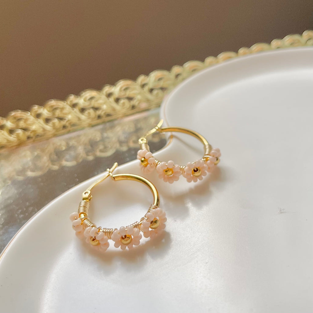 Arracadas flores beige.