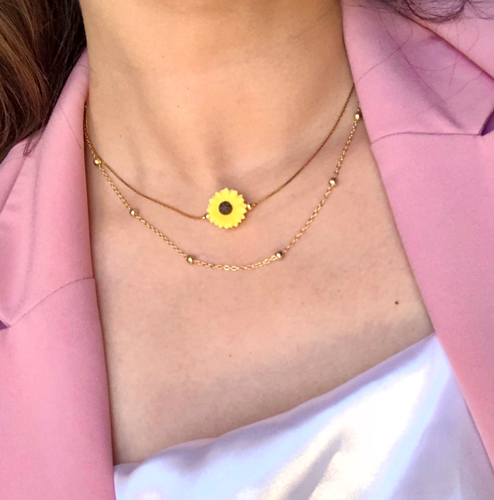 Dije: Acrílico, bolitas doradas en chapa de oro.