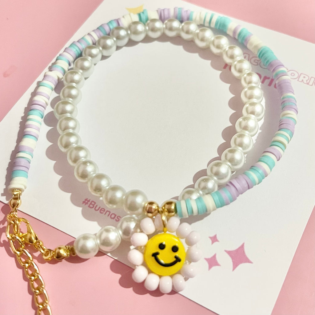 Collar: Fimo y perla cristal, terminales y broches en chapa de oro, 40 cm con estensor.