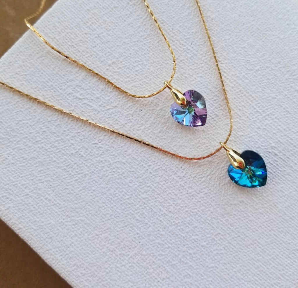 Dije: Corazon de cristal con porta dije en chapa de oro.